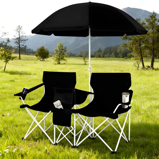 2-Person Camping Social Chair Folding Chair with Umbrella